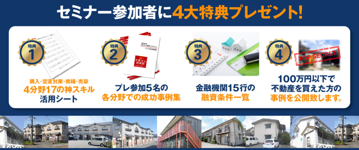 自己資金100万円から家賃収入5000万円を達成したノウハウを一挙大公開!<参加者限定4大特典付>