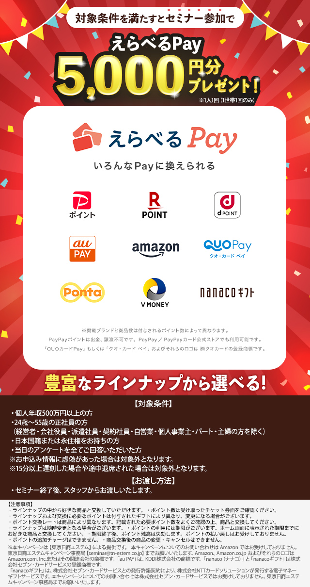 本セミナーはアットセミナーの特典に加えて開催企業からも【選べる豪華参加特典】のプレゼントがございます!この機会に是非ご参加ください。