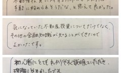 「講師の方の雰囲気がよく、とても楽しく不動産投資について学べました。ライフプラン考えてみます!」